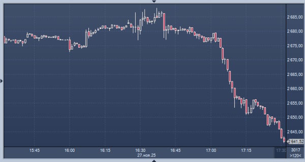 Российский рынок акций упал ниже 2670 пунктов. Исходный 28-пунктный мирный план, подготовленный США, претерпел значительные изменения, судя по заявлениям в СМИ, что может косвенно говорить о потере его привлекательности для Москвы